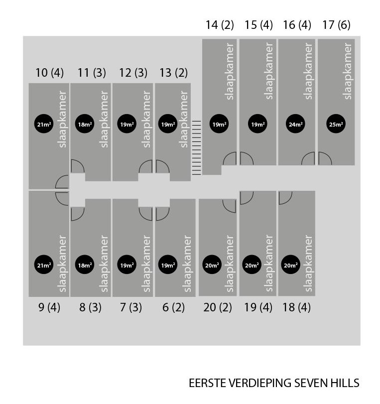 • 20 slaapkamers(1 slaapkamer voor mindervaliden per 01/01/18)
